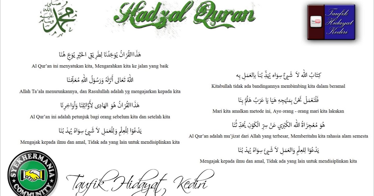 Lirik sholawat assalamualaika ya rasulullah tulisan arab, latin dan terjemahan baca juga: Lirik hadzal qur'an هَذَا الْقُرْأنُ هَذَا الْقُرْأنُ يُوَحِّدُنَا لِطَرِيْقِ الْخَيْرِ يُؤَدِّبُنَا اللهُ تَعَالى أَنْزَلَه وَرَسُوْلُ اللهِ مُعَلِّمُنَا هَذَا الْقُرْأَنُ هُوَ الْهَادِ لِأَوَائِلِنَا وَأَوَاخِرناَ. Anda mengetahui judul dan nama penyanyi. Sholawat az zahir terbaru 2019 lirik ฟร ว ด โอออนไลน ด ท ว. Lirik lagu rahmat quran feat.